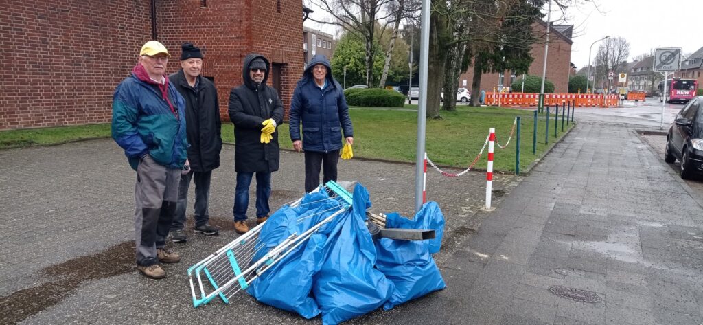 Wetter- und krankheitsbedingt, konnten, von 20 gemeldeten Mitgliedern des Männervereins, nur 8 Mitglieder aktiv mithelfen. Aufgrund der Außentemperatur von nur 5 Grad und permanentem Regen, verkürzten wir unsere Aktion um eine Stunde. Trotz allem, kam einiges zusammen.